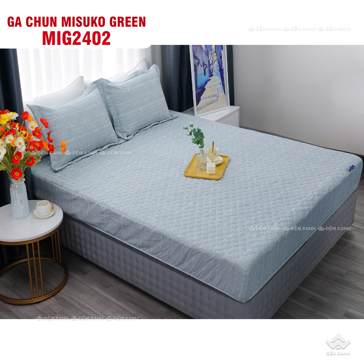• Bộ ga gối chun chần Misuko Green bọc cho đệm có độ dày dưới 20cm