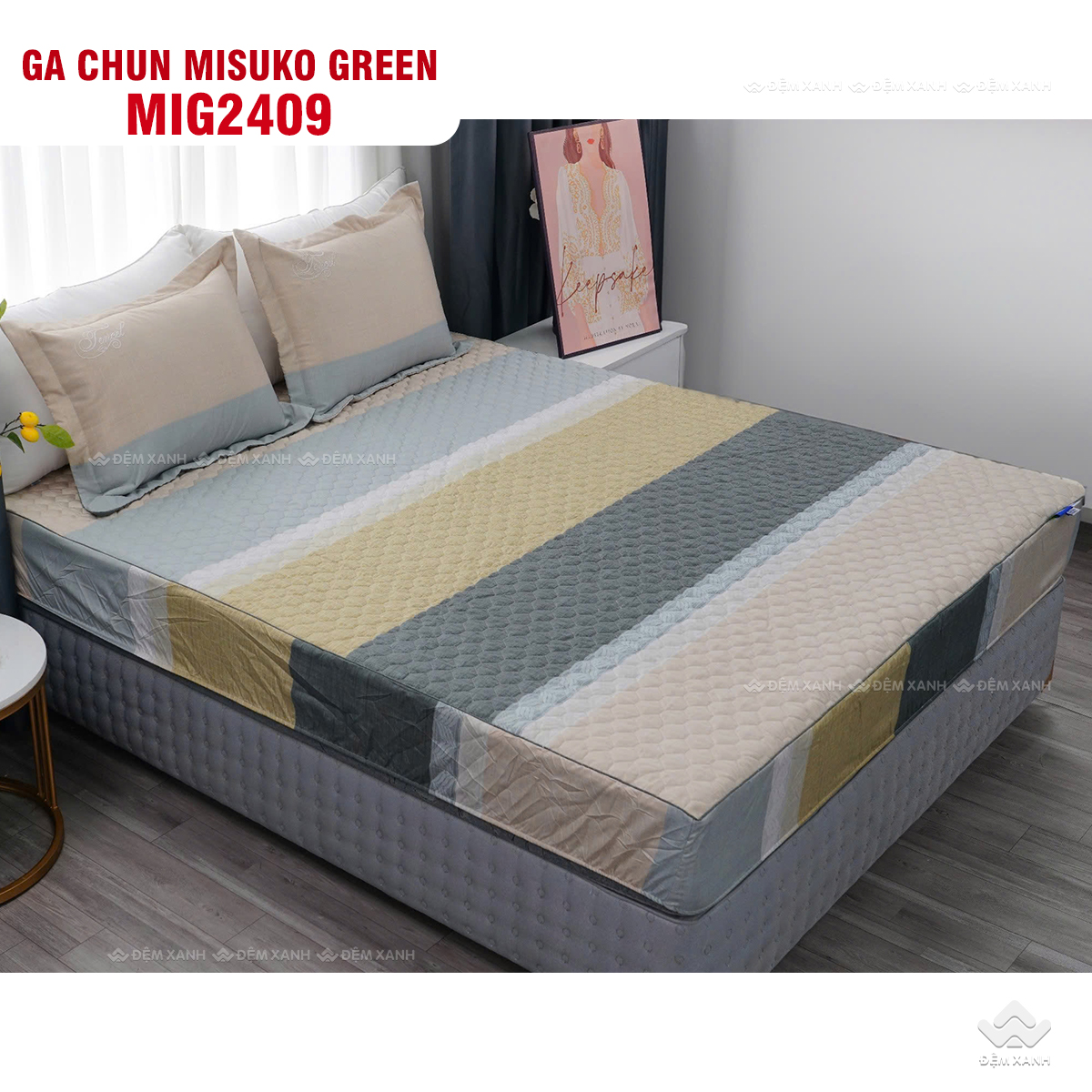 • Bộ ga gối chun chần Misuko Green bọc cho đệm có độ dày dưới 20cm