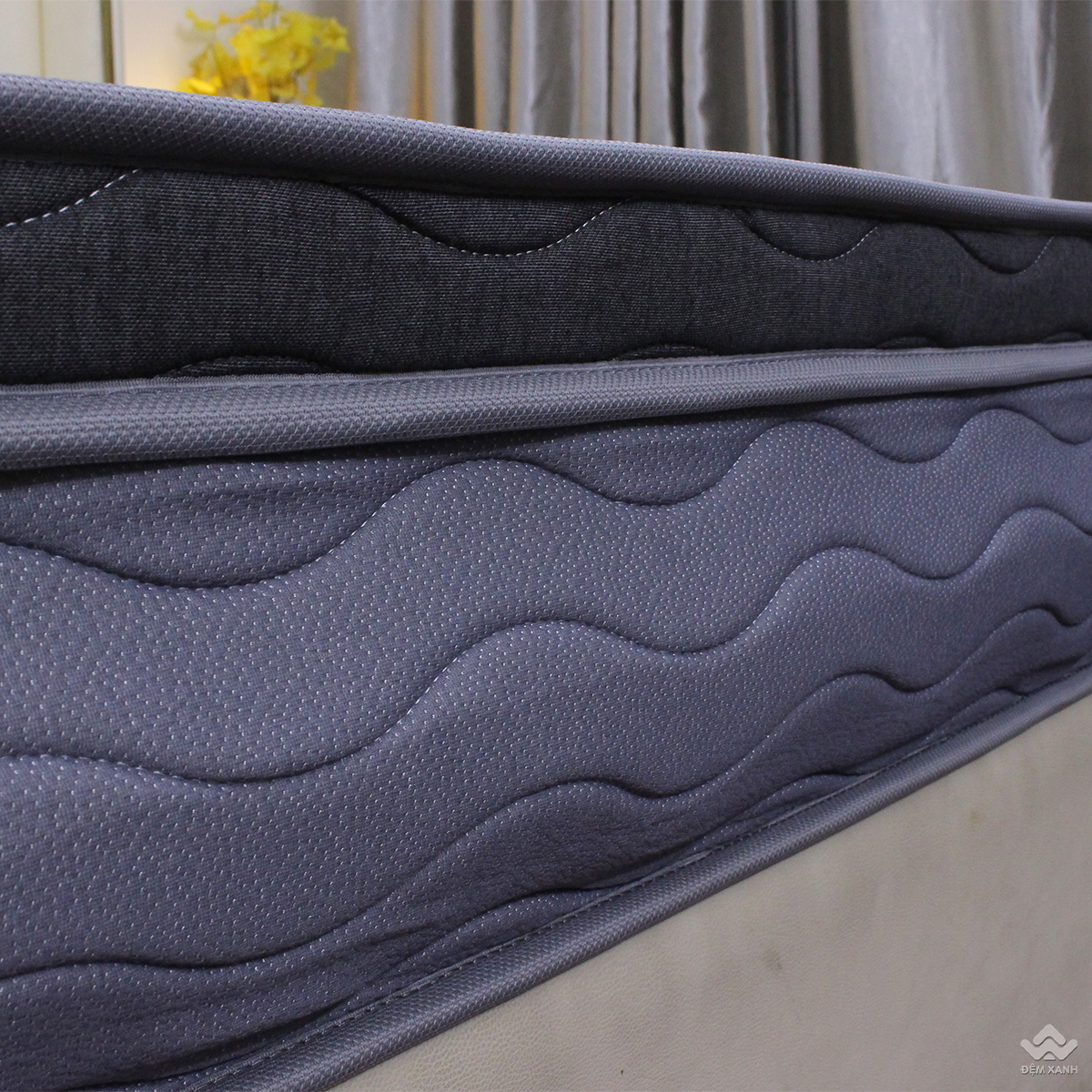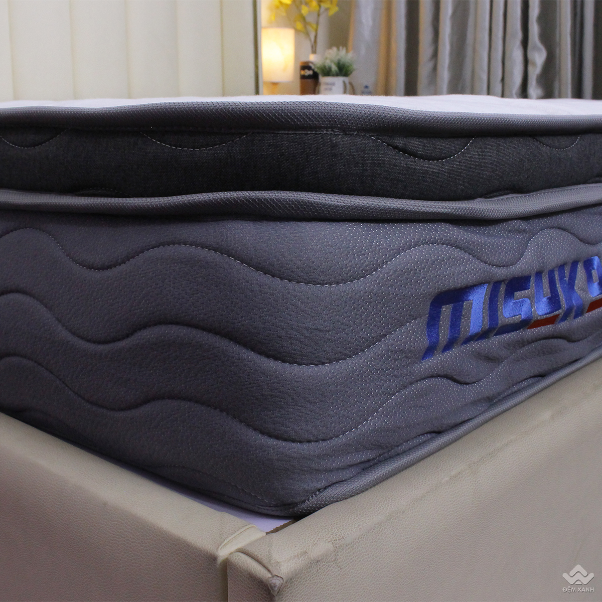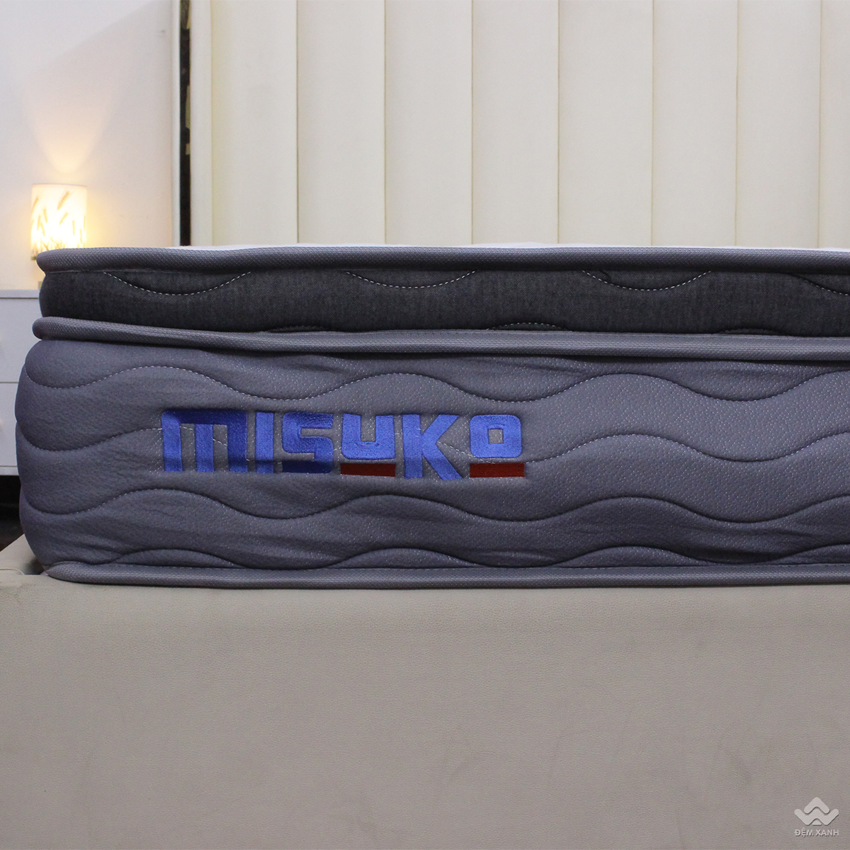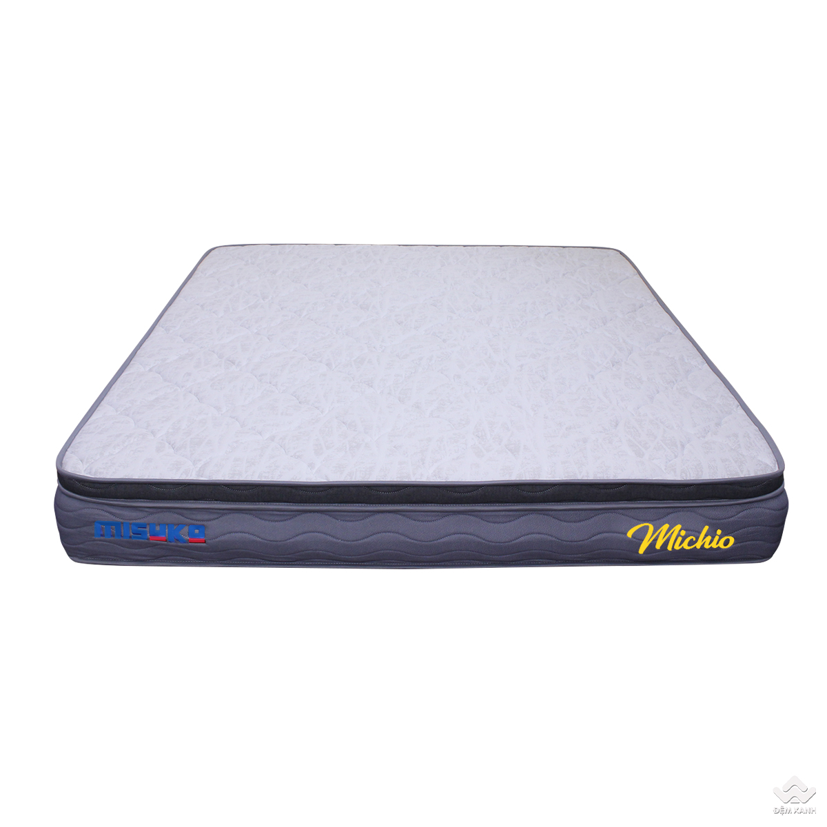Lấy cảm hứng từ phong cách tối giản nhưng tinh tế của xứ sở Mặt trời mọc, Misuko Michio hứa hẹn sẽ biến không gian phòng ngủ của bạn trở nên hiện đại hơn bao giờ hết. Tên sản phẩm Misuko Michio được thêu đầy tinh xảo trên thành đệm. Đệm cao 26cm, được tích hợp thêm lớp topper êm ái, viền đệm bản to chắc chắn cùng gam màu đen xám trung tính, tạo nên vẻ sang trọng dễ dàng phù hợp với mọi không gian nội thất.